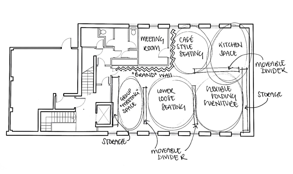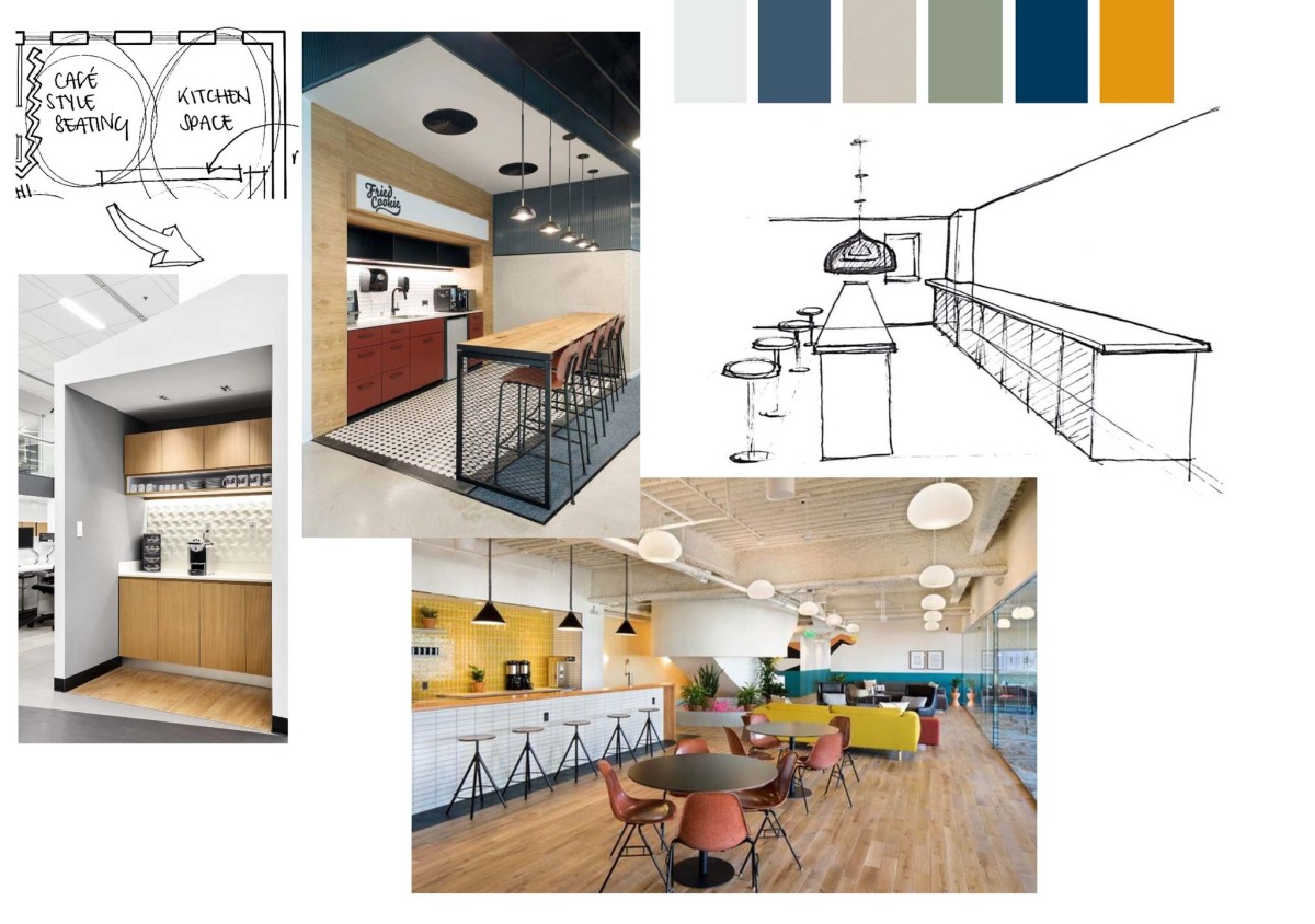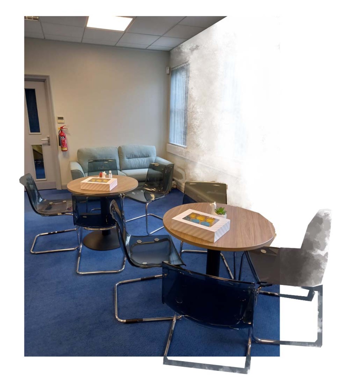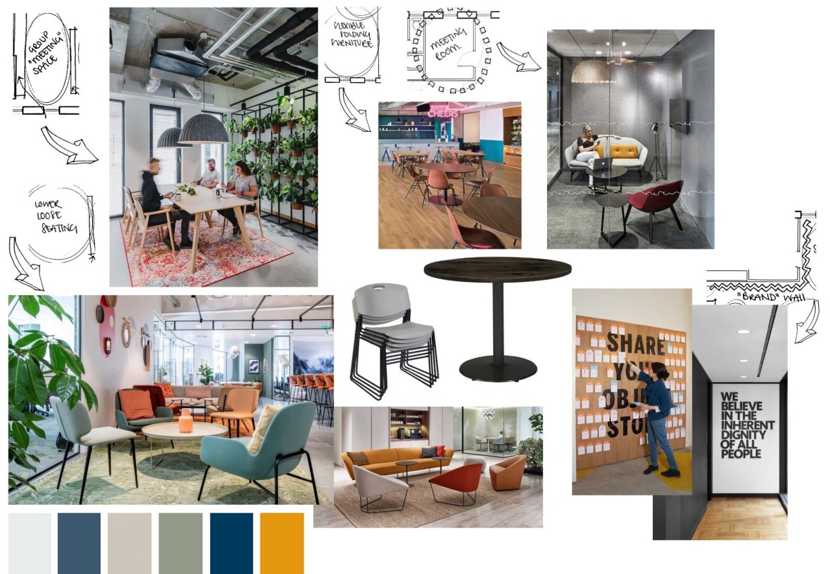 We created a design & furniture mood board [link to pdf download] to help consolidate the ideas and give the client something to show to their stakeholders. This covered everything from ideal layout and furniture down to paint finishes for walls and feature areas.
