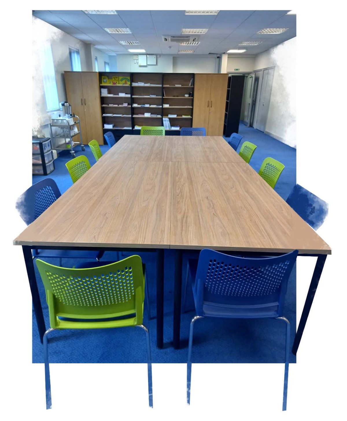 When it came to implementation, used desks were teamed with new task chairs, pre-loved kitchen chairs were paired with new tables, and we supplied and installed a range of breakout seating, along with worktables and functional, colourful seating.