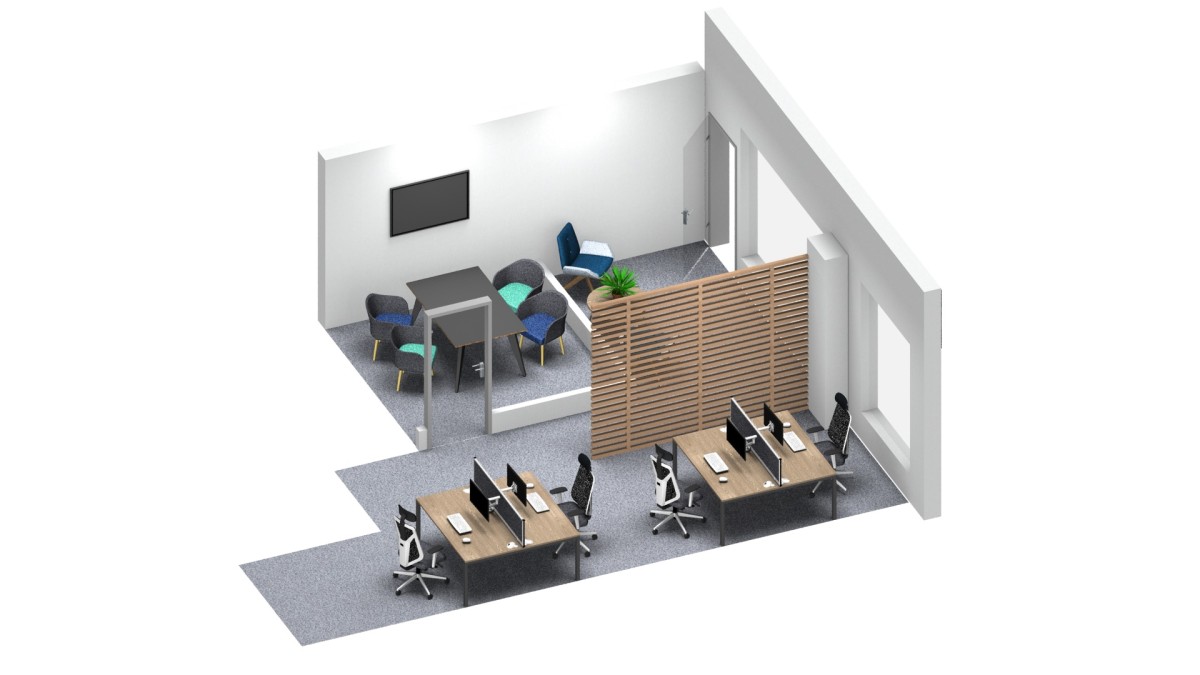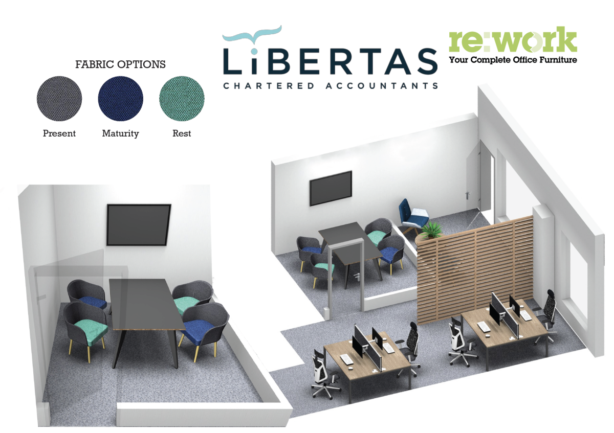 Our discussion with Libertas helped us understand their needs for their office renovations. The main goals we had to achieve were a visitor area, the first thing seen by new arrivals, an office space with bench desking for four people and a meeting room.