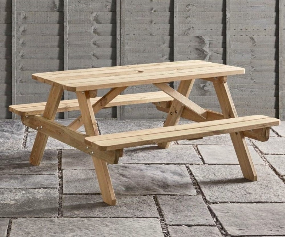 The Hereford Picnic Bench is a Heavy duty solid spruce picnic table, Pressure treated for outdoor use with