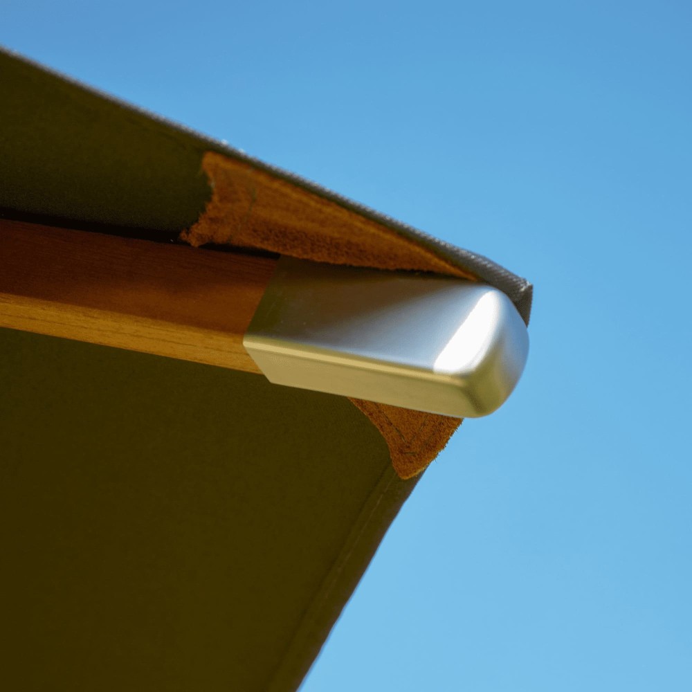 incorporating 38mm dia split pole, and canopy ribs with aluminium ends that fit into leather pockets for extra aesthetics and durability.