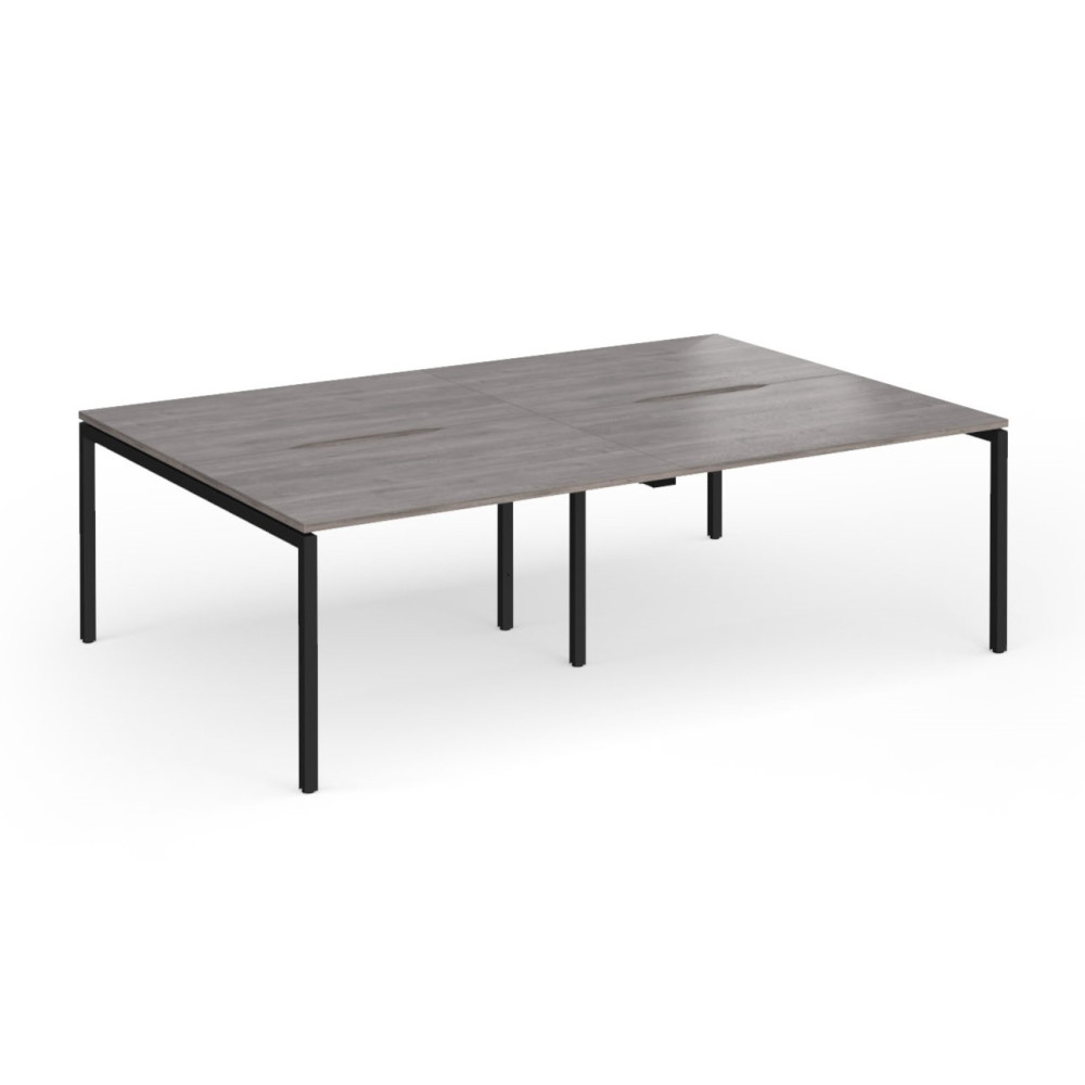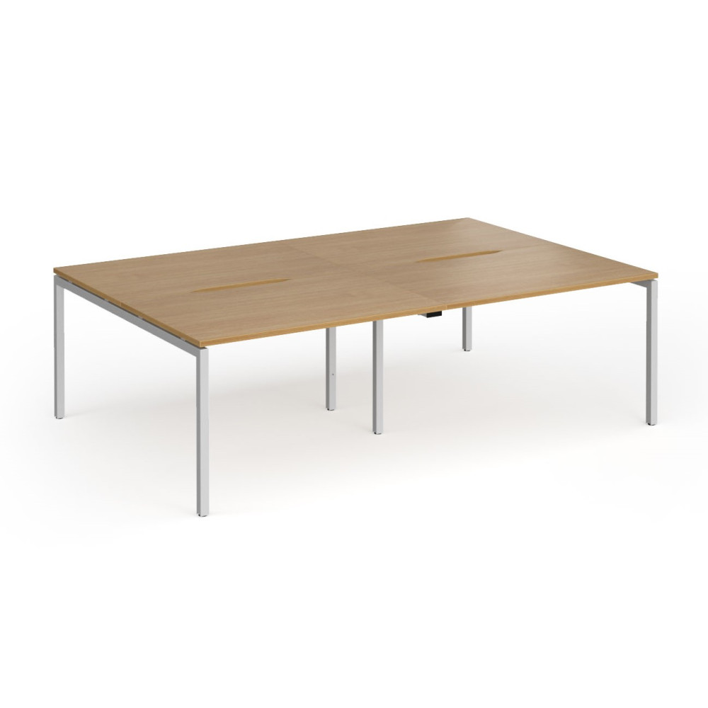 800mm deep rectangular double bench desk unit with 25mm thick scalloped tops.