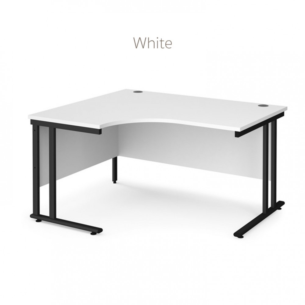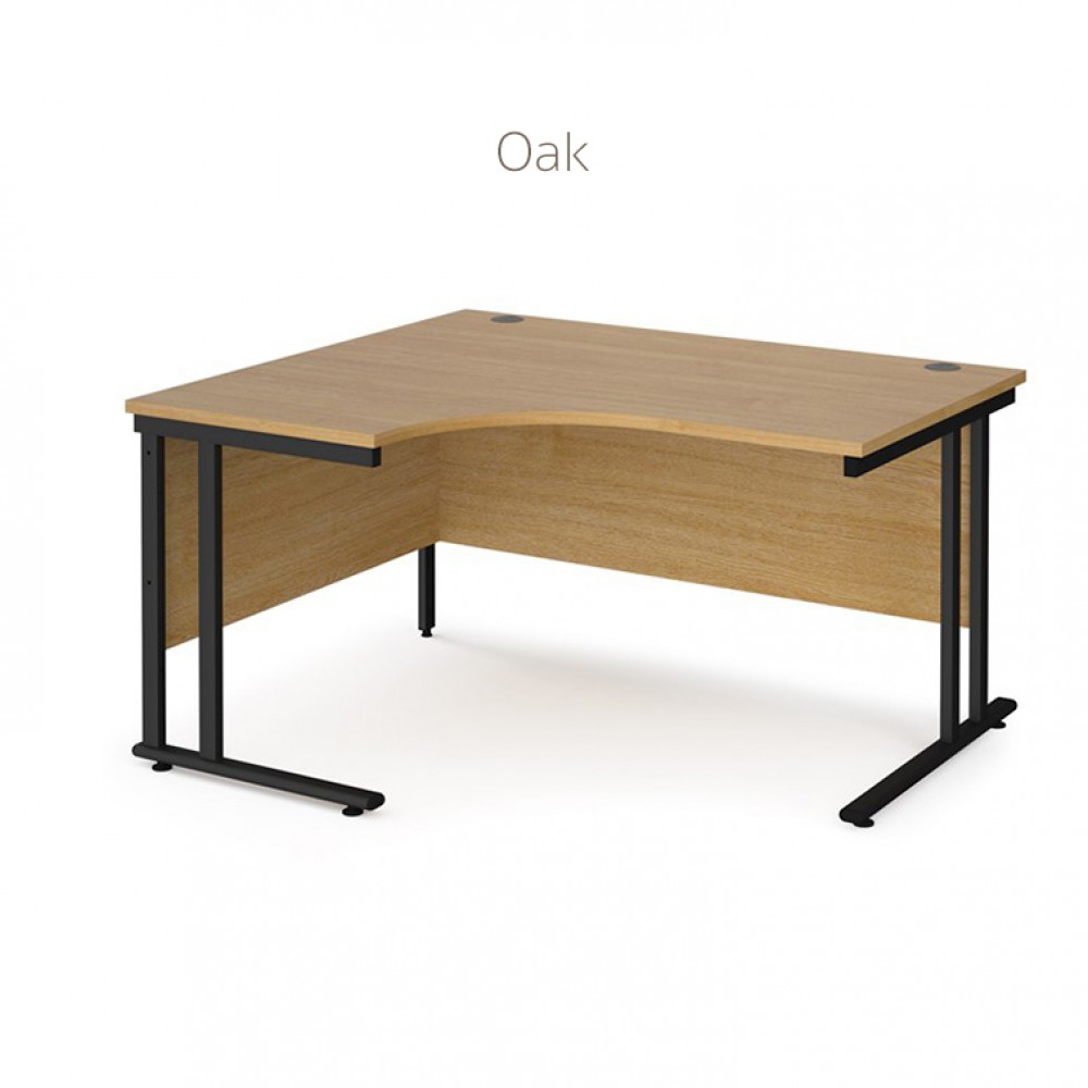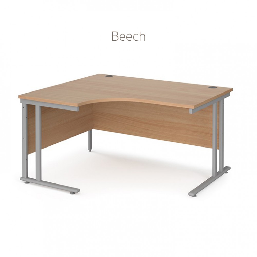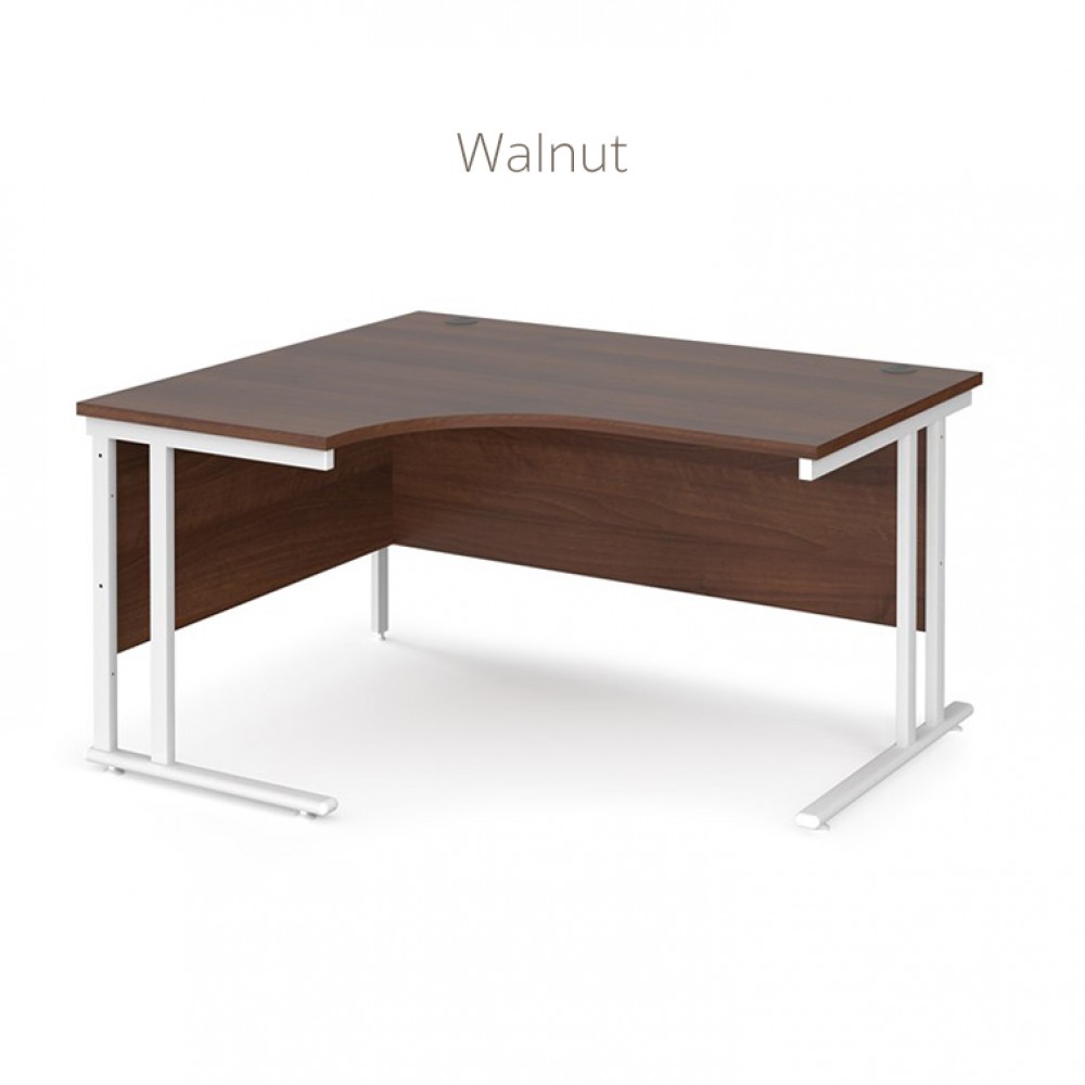 Ergonomic cantilever framed corner desk available in small range of finishes.