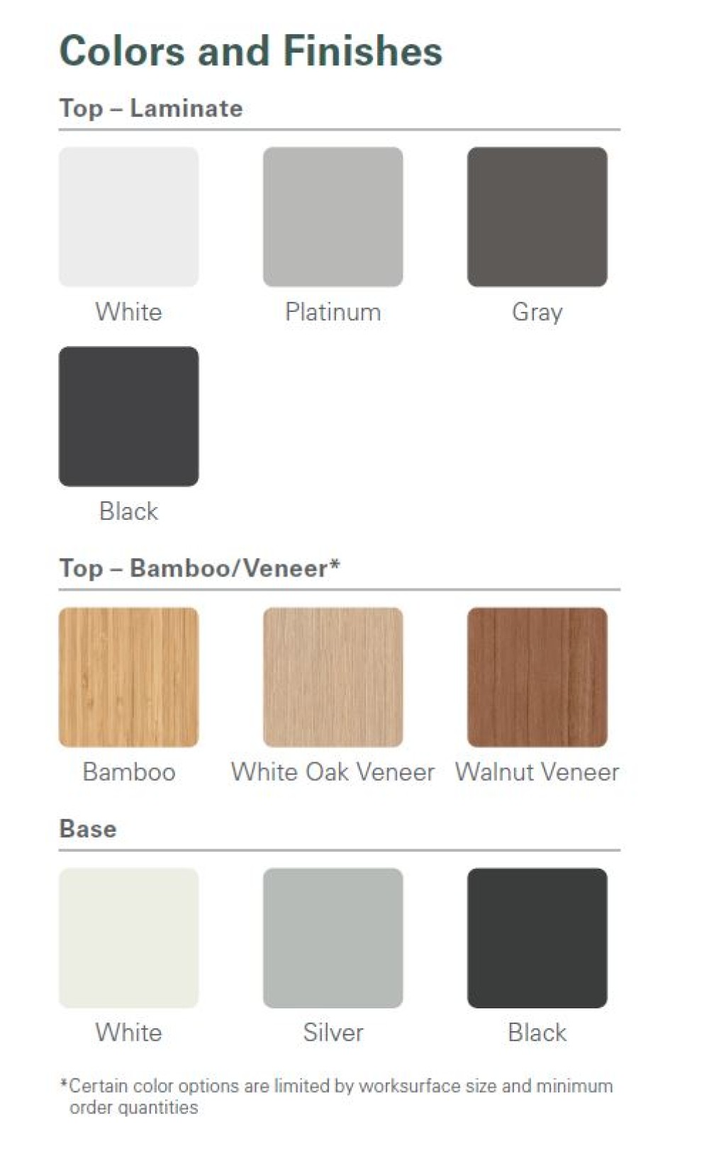 However, any the top and base finishes shown in the swatch can be ordered in advance at extra cost.