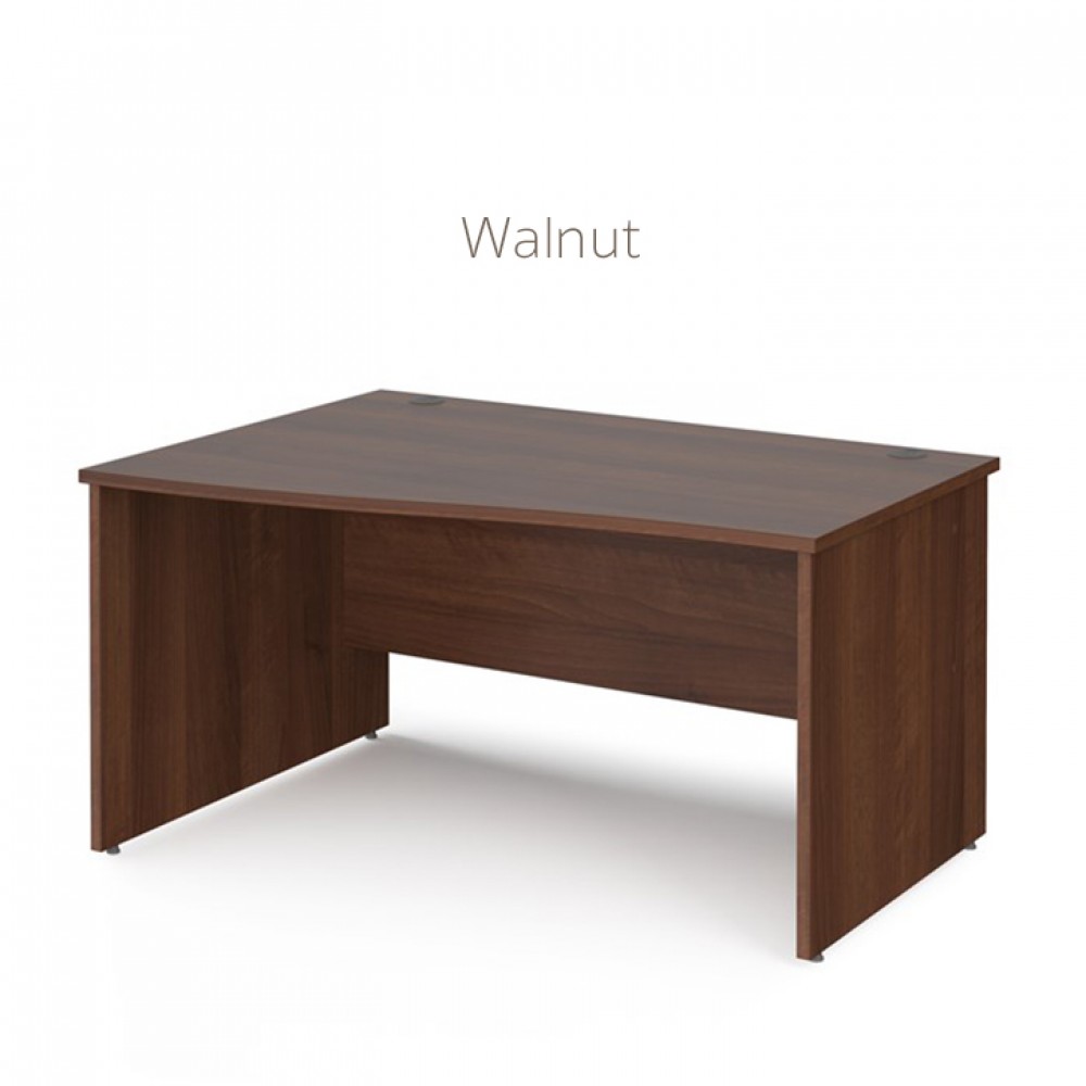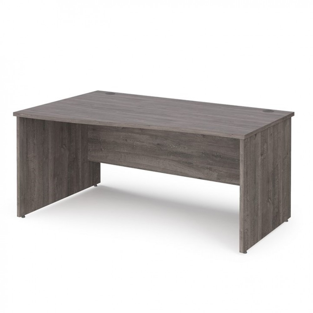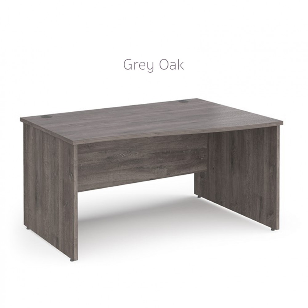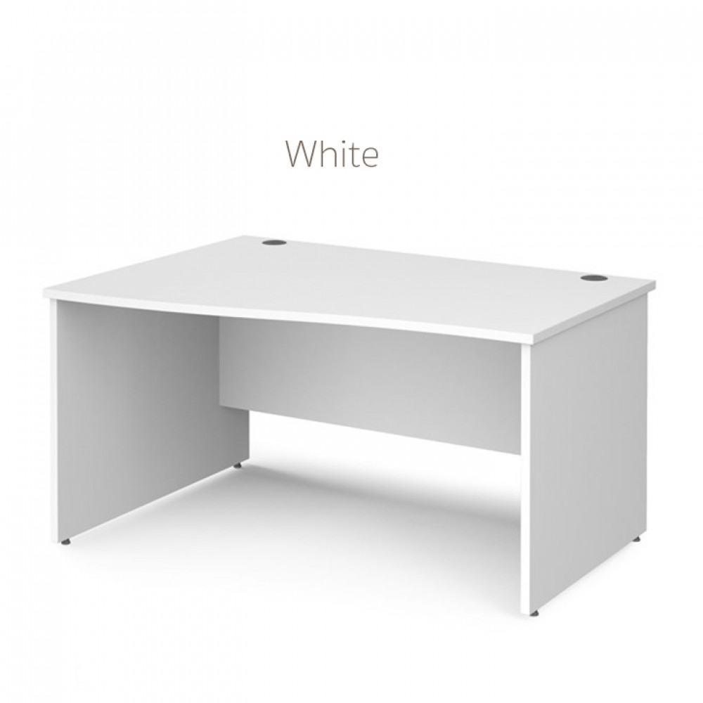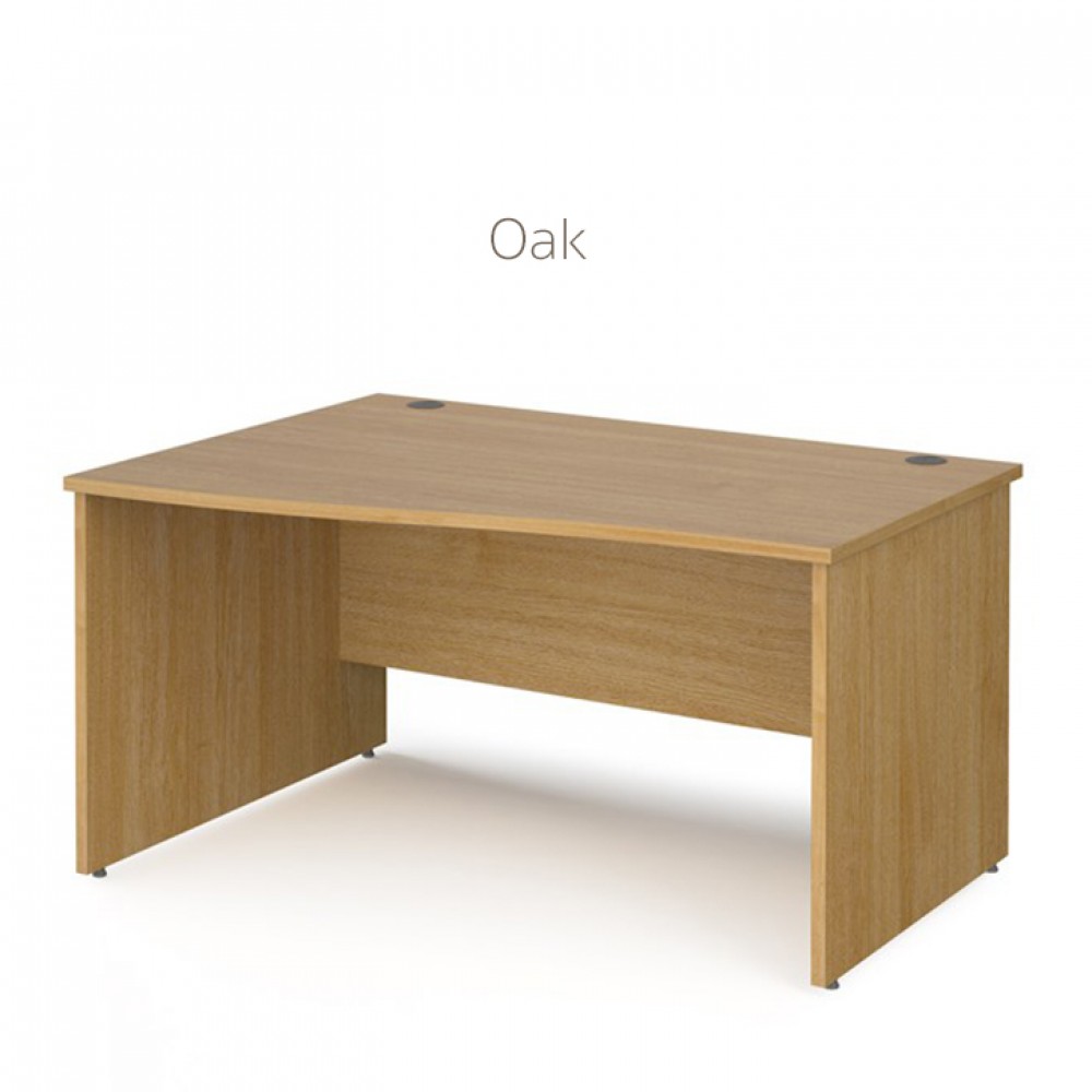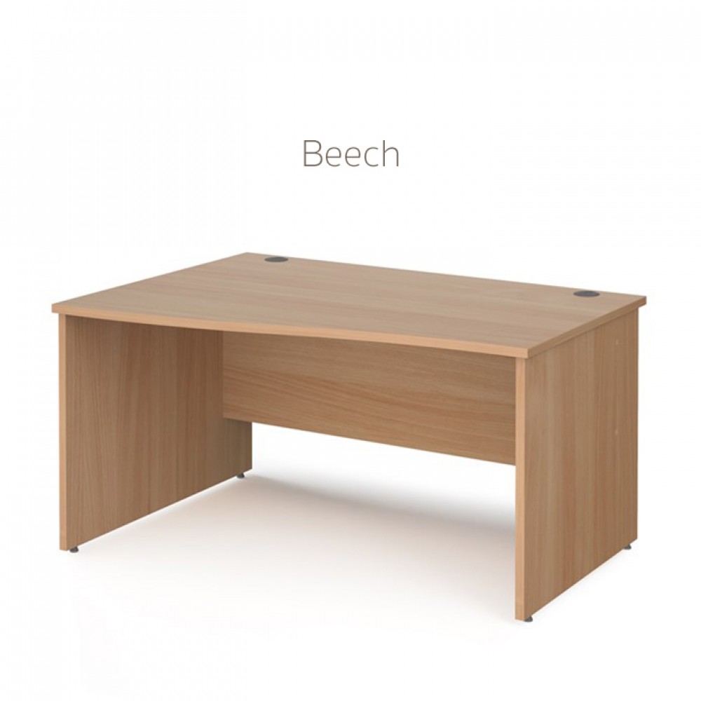 Traditional panel end design, 25mm thick top and legs with adjustable feet. Two cable access ports.