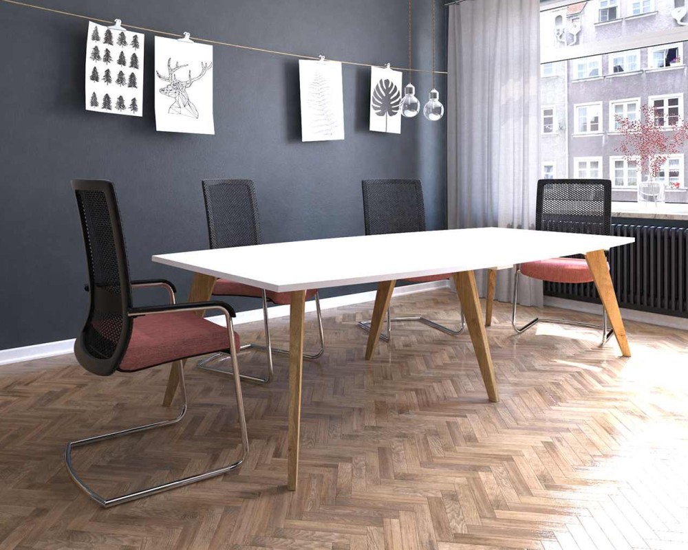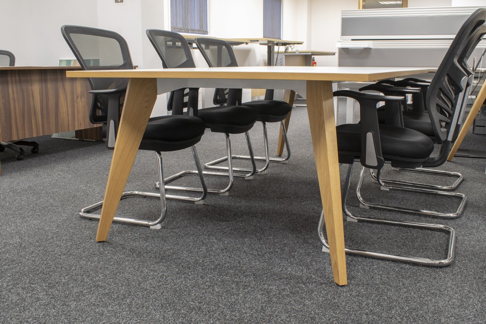 The Maya is a large rectangular range of boardroom tables with solid Oak legs.