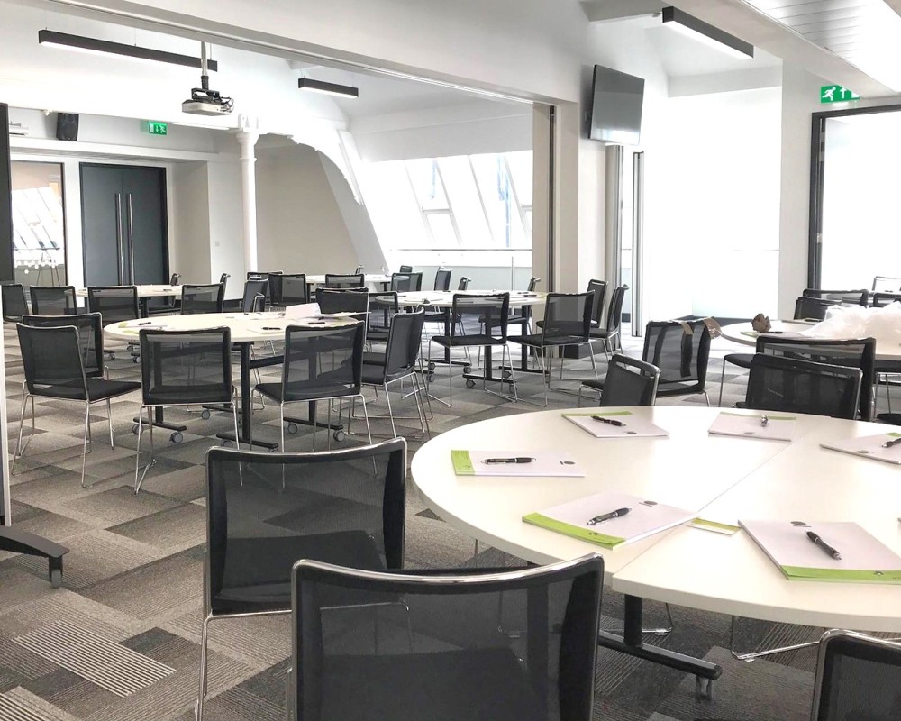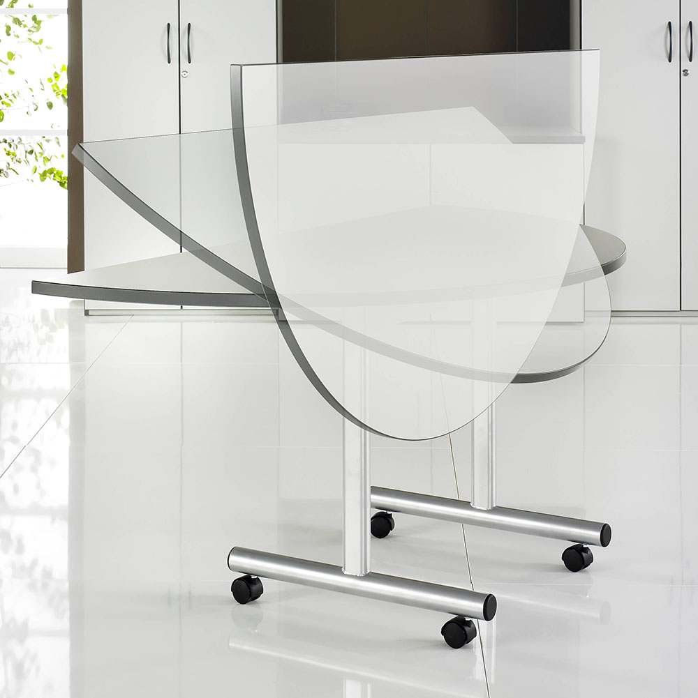 Flip top table with on castors ideal for a flexible meeting or collaboration space that can be stored away efficiently when not in use.