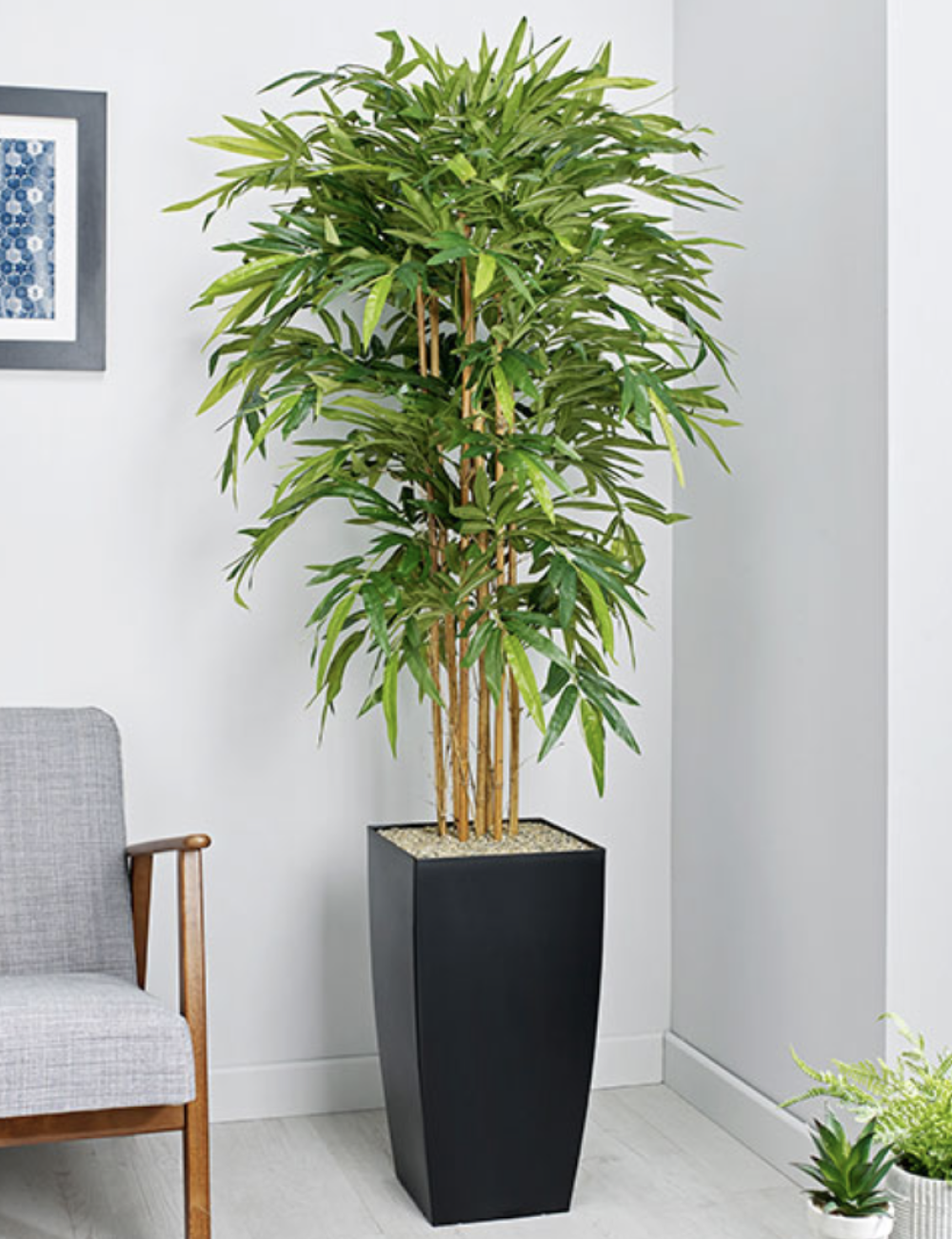 Bamboo floor standing plant is shown in Matt Black planter.
