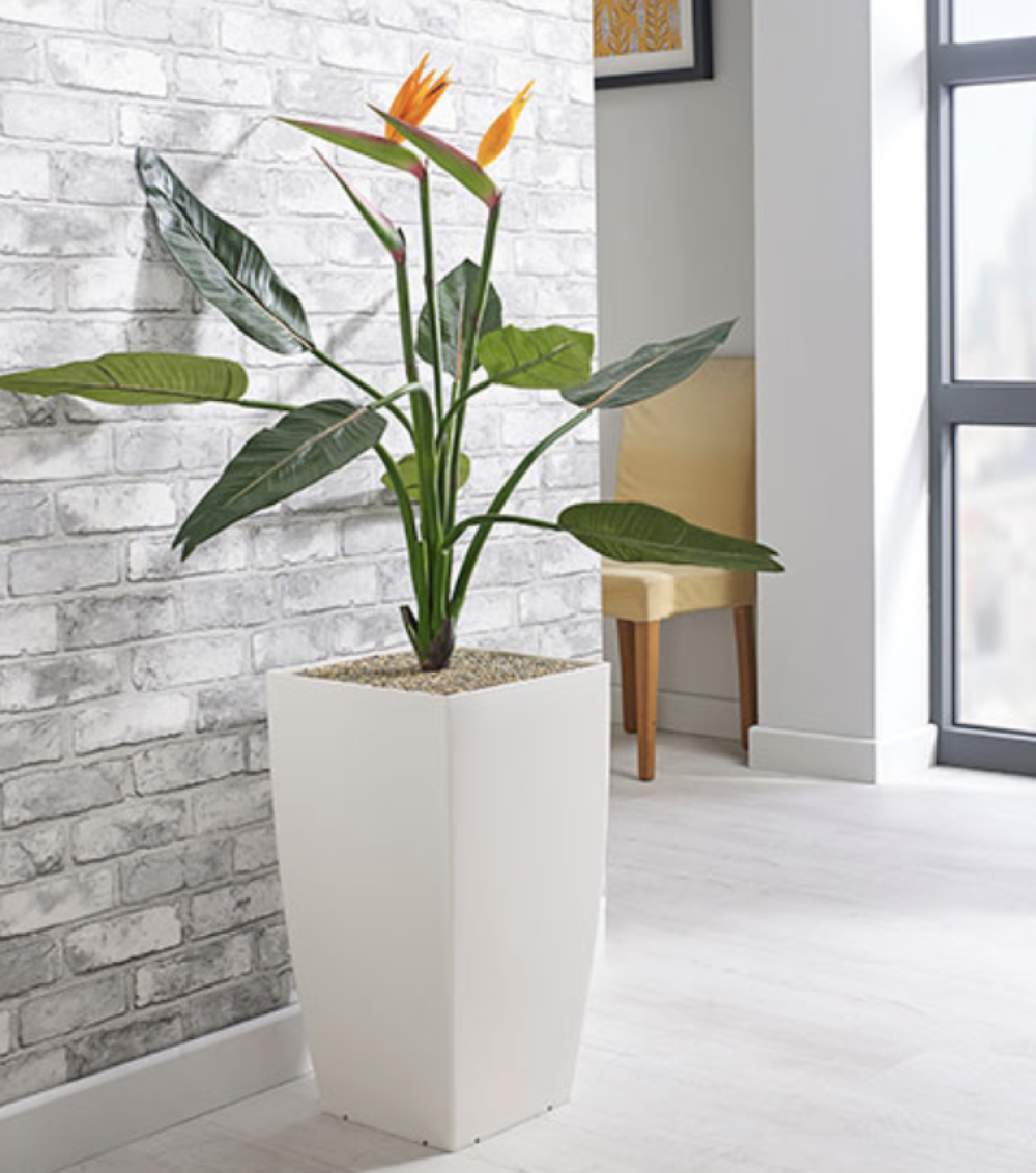 Bird of Paradise floor standing plant shown in Matt White planter.