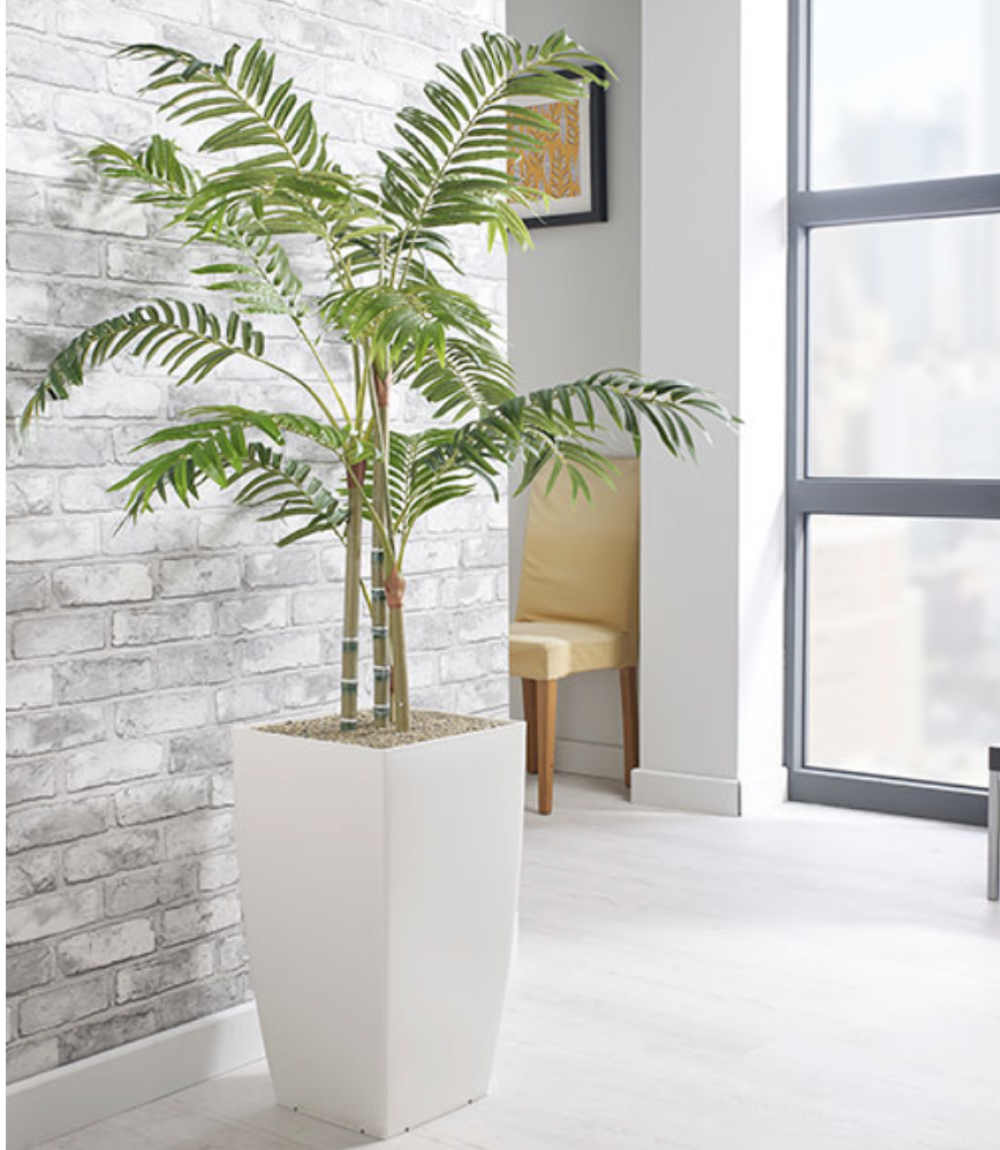Parlour Palm floor standing plant is shown in Matt White planter.