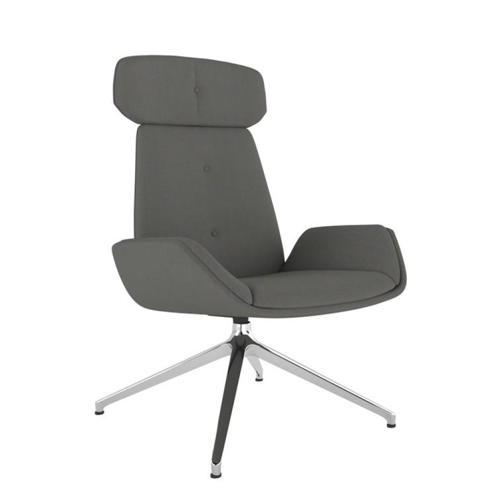 Upholstered Lounge Arm Chair With Headrest and Chrome Pyramid Base
