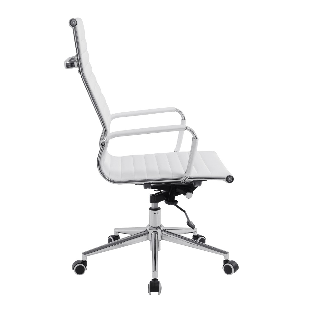 This high back contemporary classic designer executive chair is upholstered in Faux Leather and is suitable for both a workplace or home office environment.