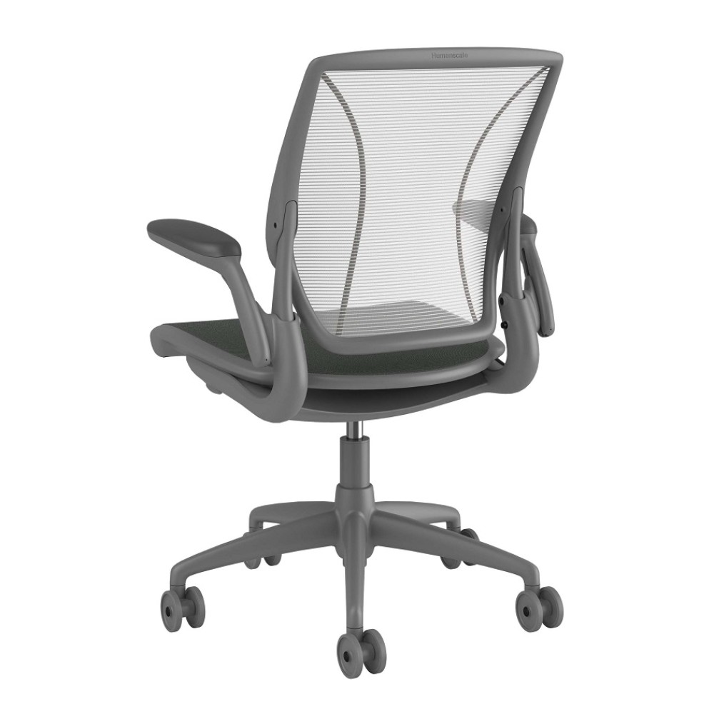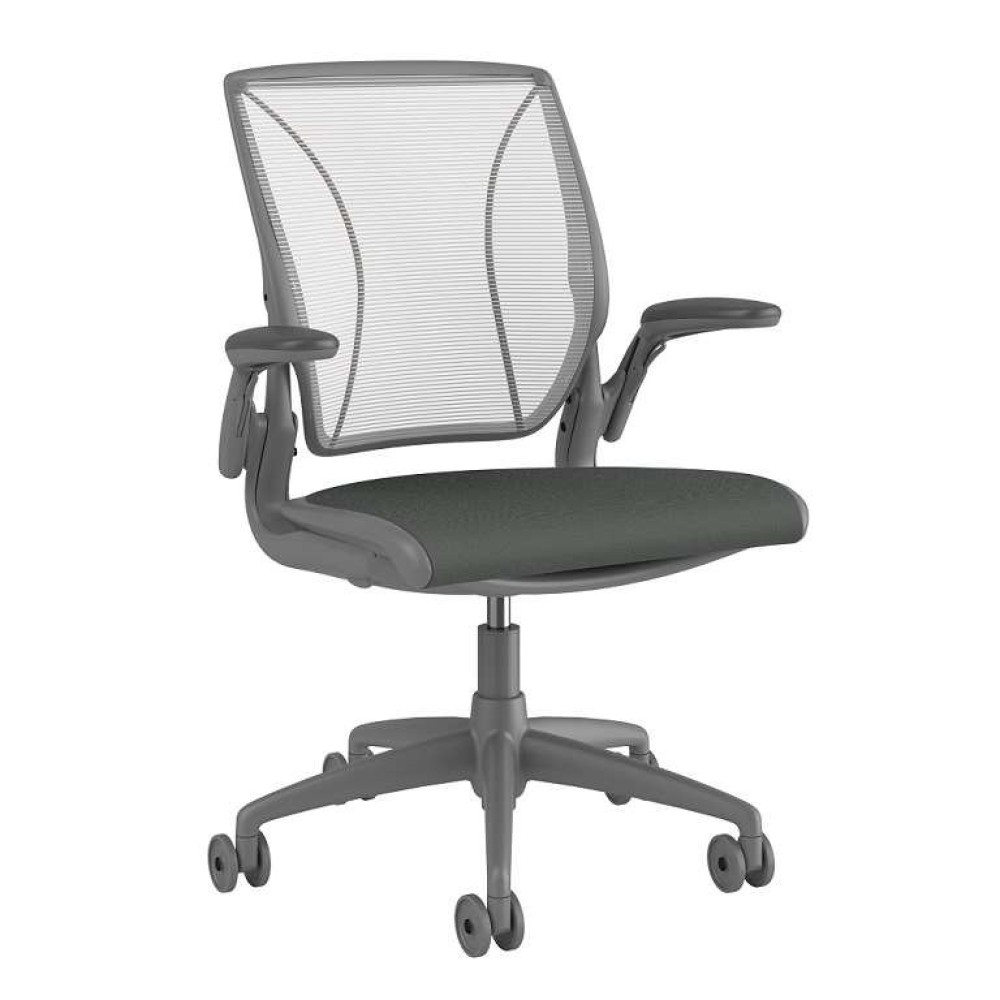 The Diffrient World chair features a seat depth slide and armrests that are attached to the back of the chair and move with the user, providing custom comfort throughout the workday.