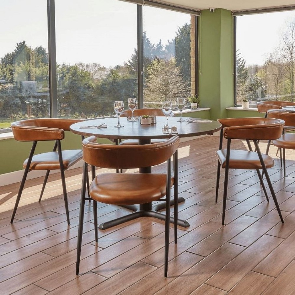 The tapered chair legs and strong metal frame are powder coated with a durable black matt finish.