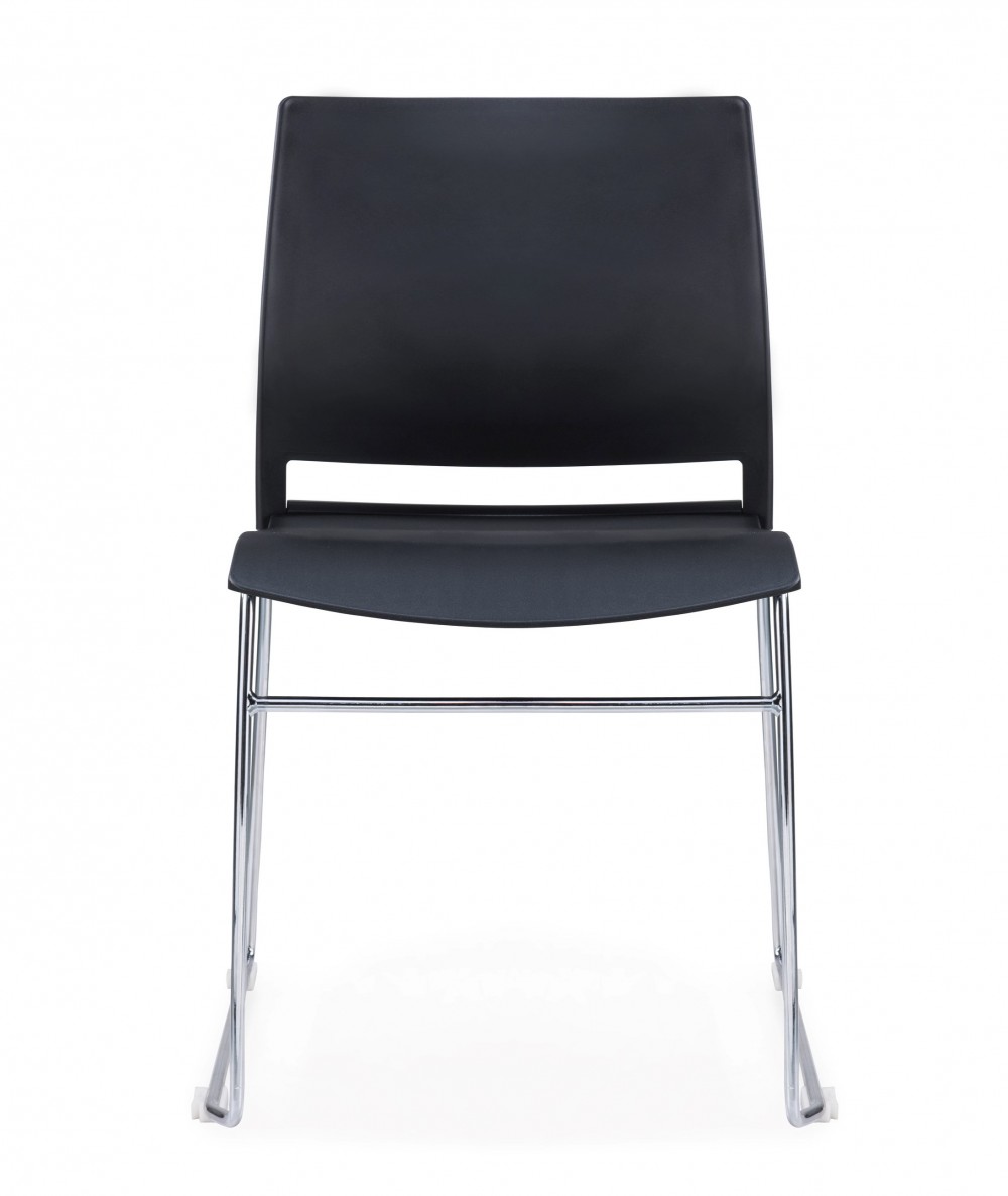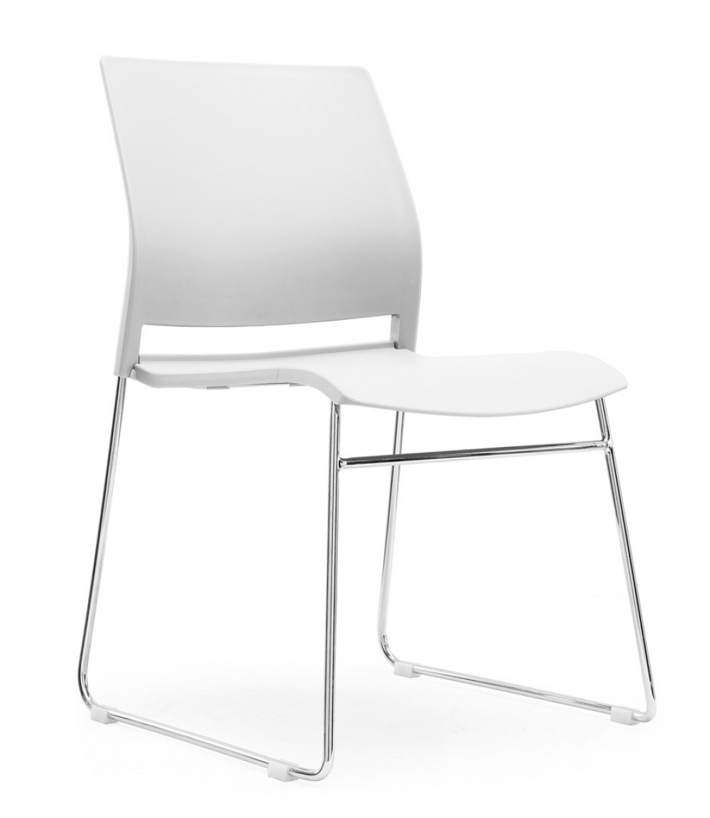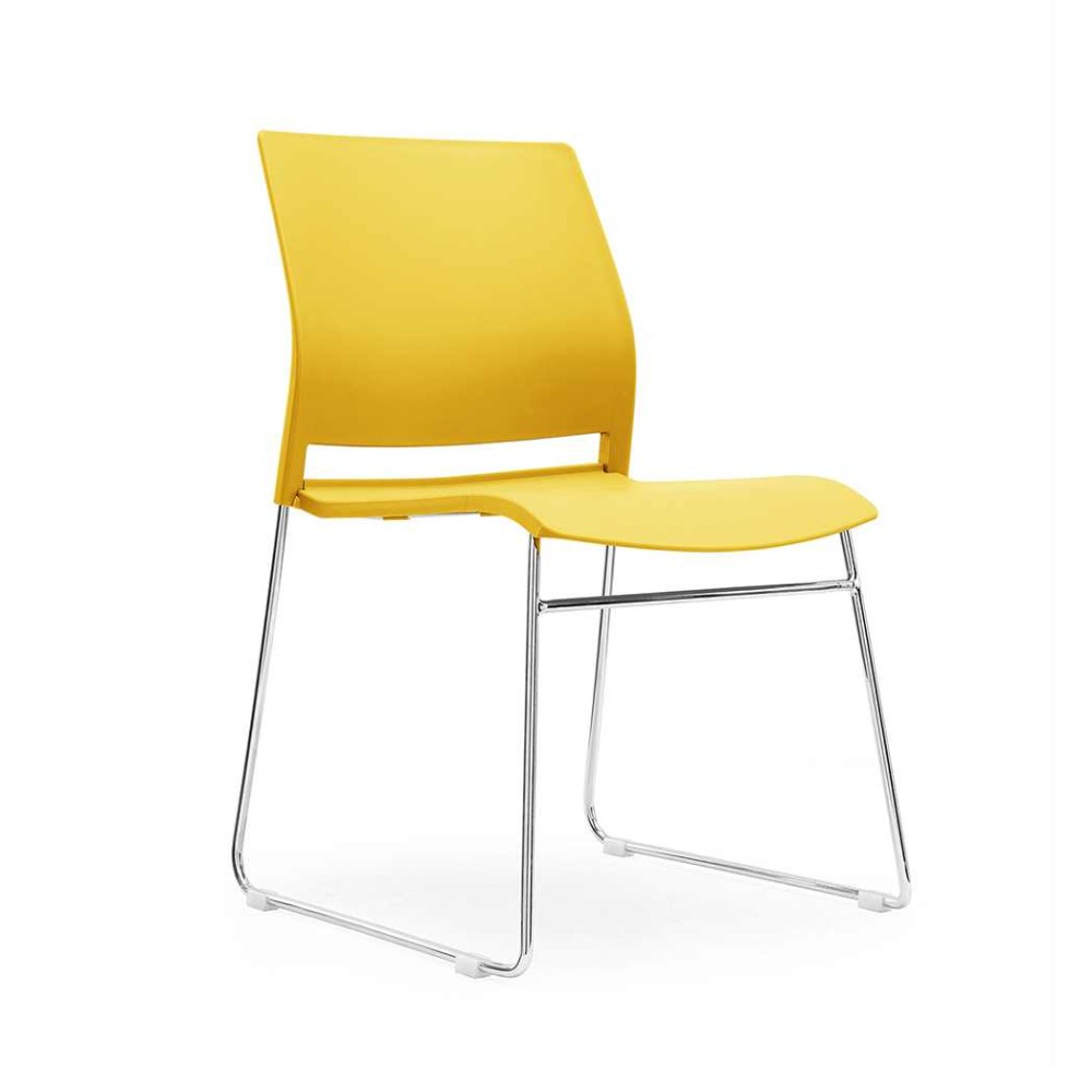 Stackable plastic shell chairs with chromed metal Skid frame