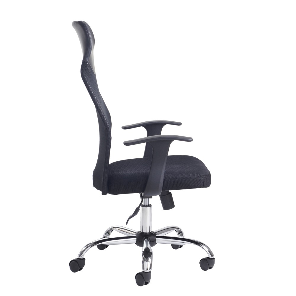 Black air mesh seat with black mesh back and fabric headrest
