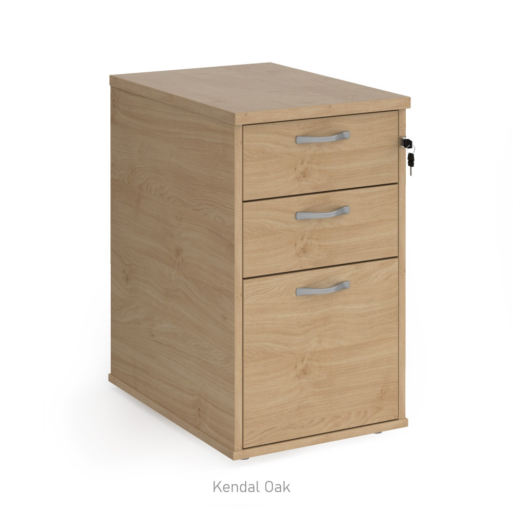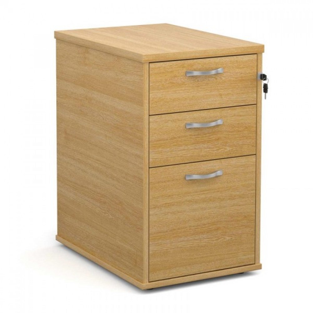 Desk high 3 drawer pedestal with lockable drawers supplied with two keys.