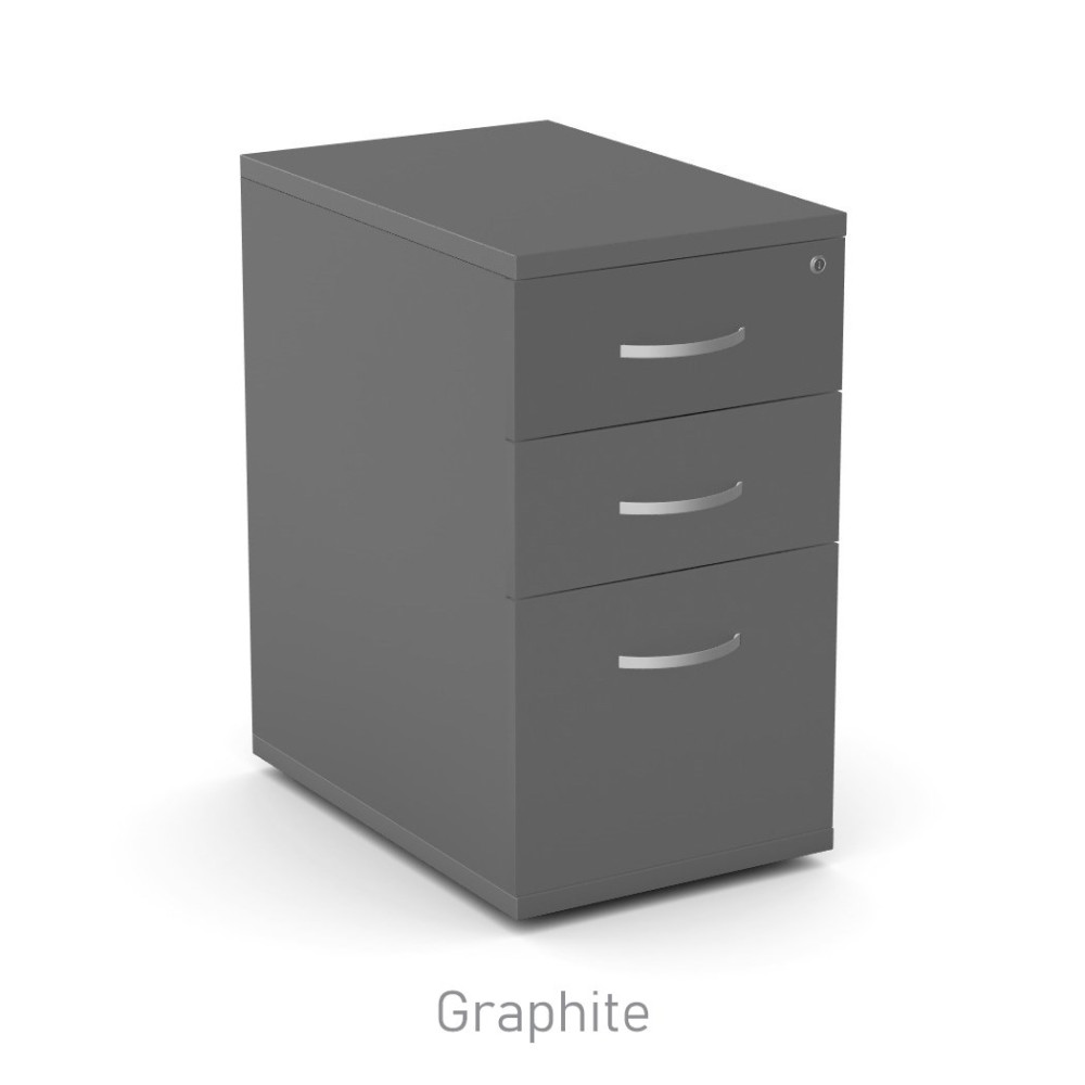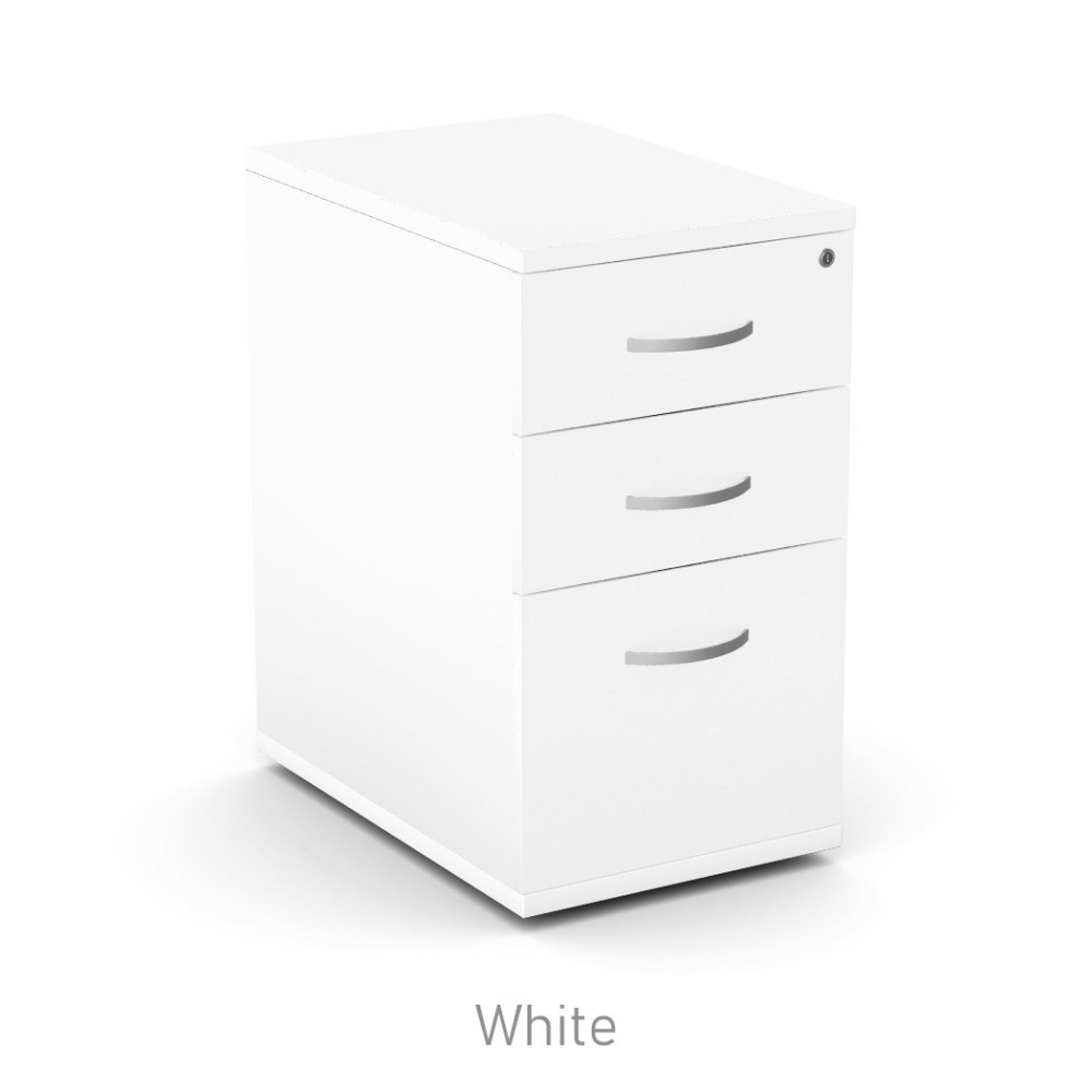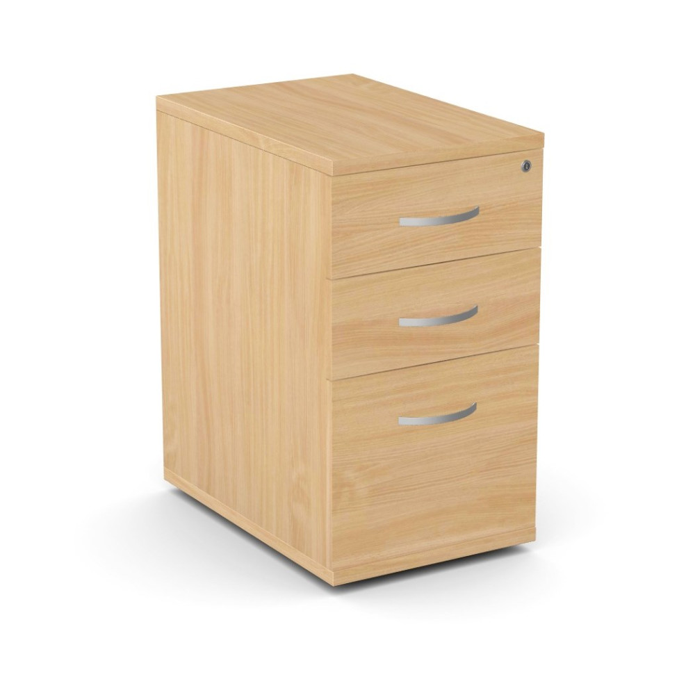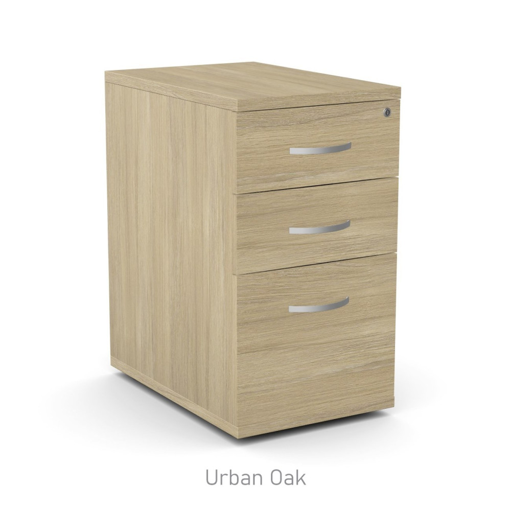 Desk high 3 drawer pedestal with lockable drawers supplied with two keys.