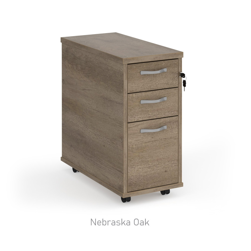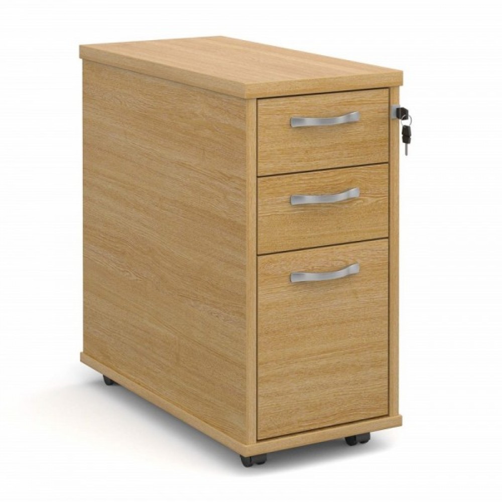 600mm deep three drawer narrow mobile pedestal on castors - ideal for a smaller desk.